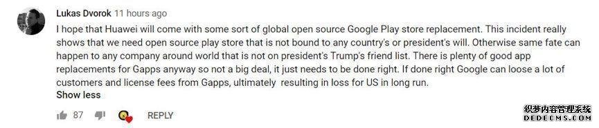 “我希望华为能够推出某种全球开源的Google Play替代品。
